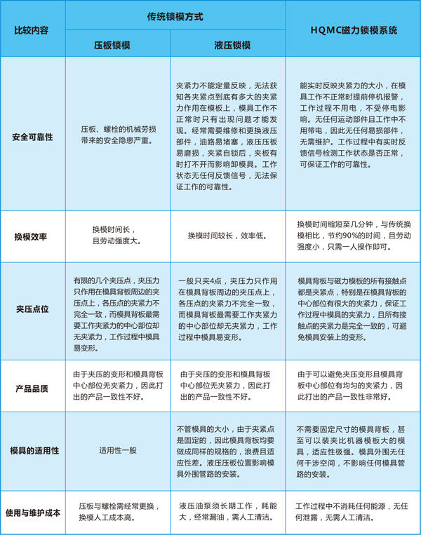 傳統鎖模和HQMC磁力鎖模系統的對比