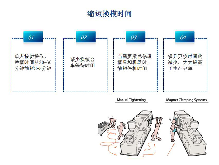 所有的注塑機、合模機、壓模機都是電永磁快速換模系統的配套對象。
