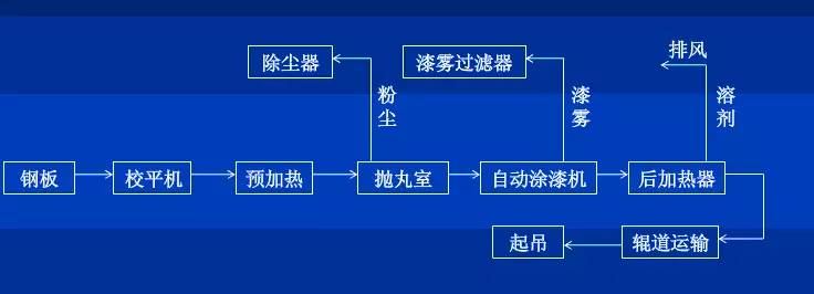 鋼板拋丸預處理流水線(xiàn)的工藝流程圖