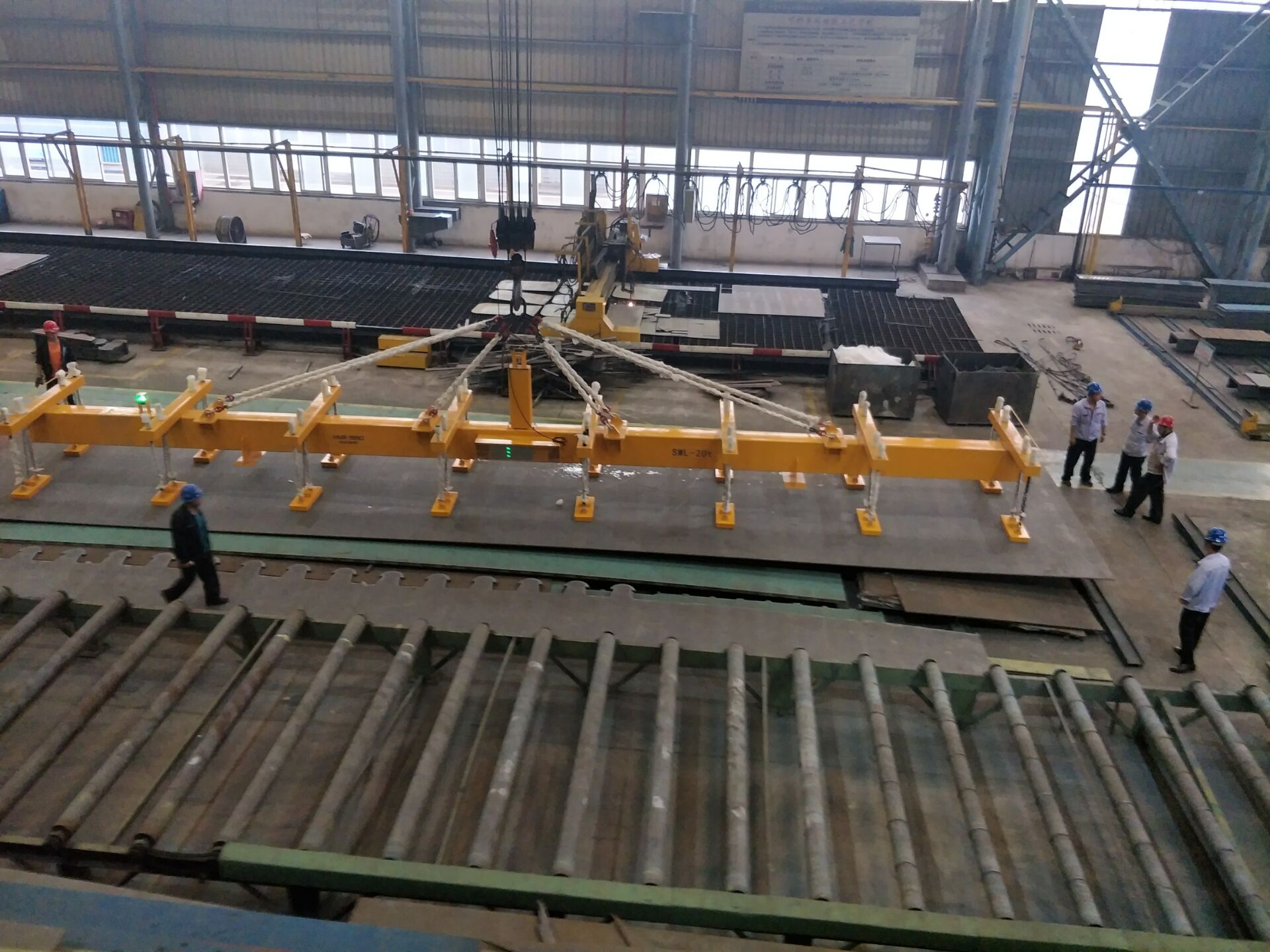 通常在制造行業(yè)中鋼板的吊裝預處理等工序是必不可少的,鋼板從裝卸車(chē)到預處理在到加工在到制造每個(gè)環(huán)節都需要對鋼板進(jìn)行吊裝搬運,特別是大型制造行業(yè)國企,大部分都是比較長(cháng)厚的鋼板,進(jìn)行室內外的吊裝和搬運。