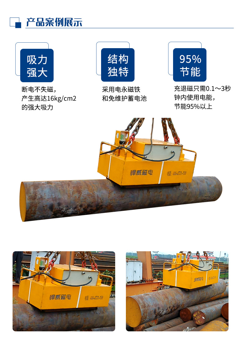 與傳統機械吊運方式相比,圓鋼磁力吊具具有更高的安全保障,采用智能控制器進(jìn)行操作,安全簡(jiǎn)便,效率更高。